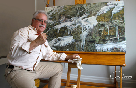 Rawlings paints in his home studio and lives with his wife Susan and their dog Bentley in CollIngwood ON.