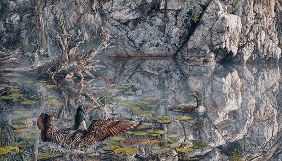 – Painting: “Early Morning Breakout – Common Loon Family”